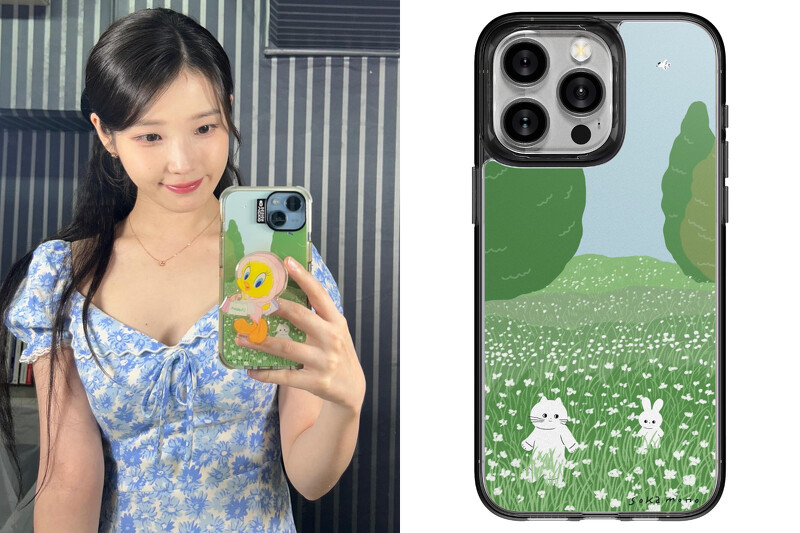 IU喜欢的手机壳款式和她本人的风格很接近,大多以清新少女的插画风格居多,而且价格也相当亲民,这款来自VICXXO GALLERY的手机壳以森林漫步为主题,配上简约的插画线条充满清新魅力,在IU好多张照片中都能看到它屹立不摇,可见女神对它是真爱。