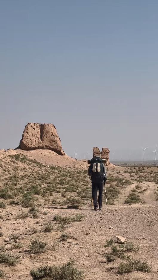 蒋羿告诉记者,他从春天走到了秋天,目前行程已经过半,8月29日下午正在陕西神木的长城脚下徒步。他买一次干粮可以吃三四天,因为经常看不到城镇,所以经常露宿戈壁沙漠,也体验了“大漠孤烟直,长河落日圆”的壮美景色。
