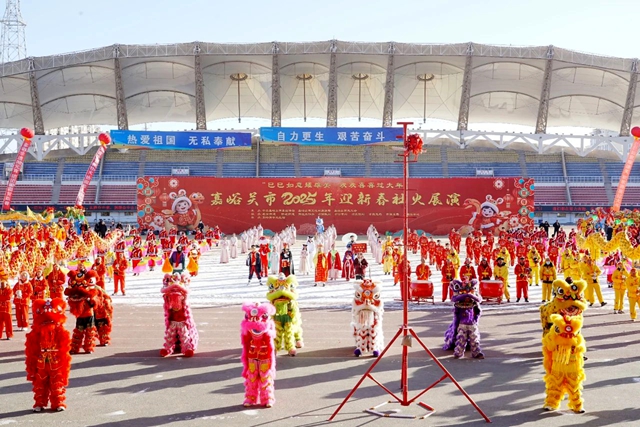 金蛇献瑞贺新春,雄关社火闹元宵。2月12日,农历正月十五,嘉峪关市体育场内锣鼓喧天,人头攒动,洋溢着喜庆祥和的节日氛围。“非遗贺新春 我的家乡年”嘉峪关市2025年迎新春社火展演活动在市体育场成功举行,来自雄关街道、钢城街道和郊区办的三支社火表演队伍,为全市人民献上了一场精彩纷呈的文化盛宴,也奏响了新春佳节最动人的乐章。
